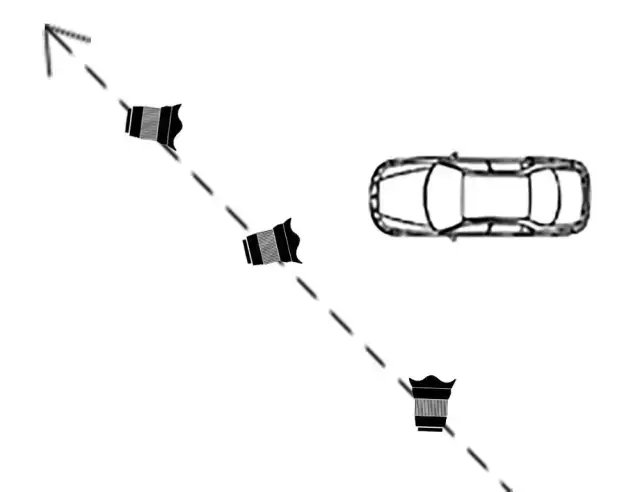 侧飞镜头是无人机位于被摄主体的侧面运动所拍摄的画面,无人机运动方向与被摄主体的位置关系通常有平行和倾斜角两种,如下图所示。